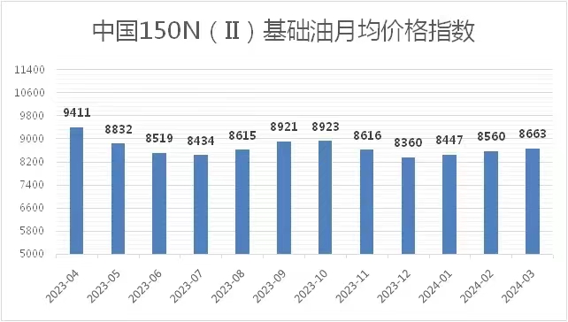 ● 拟定以中国150N(II)基础油产品的主体生产企业挂牌价为基准采集数据
