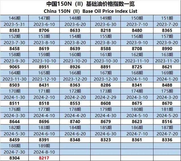 ● 拟定以中国150N(II)基础油产品的主体生产企业挂牌价为基准采集数据