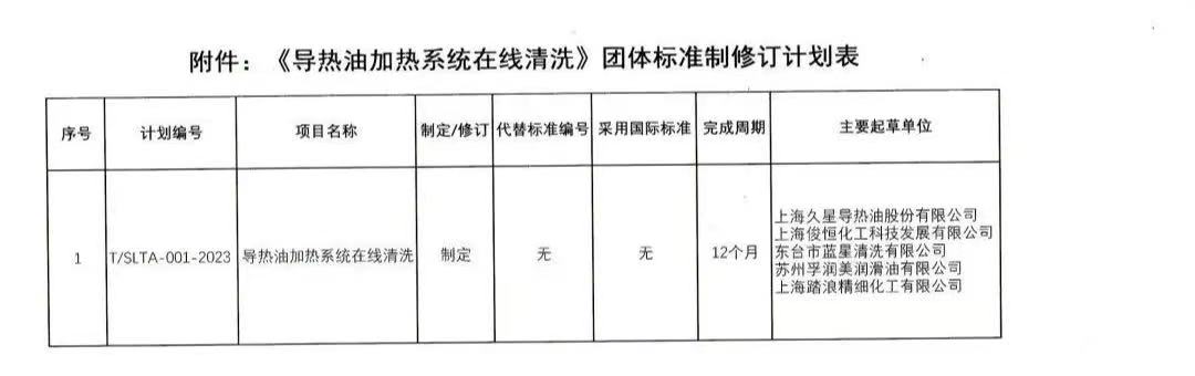 附件:《导热油换热系统在线清洗规范》团体标准制修订计划表(点击图片可放大查看)