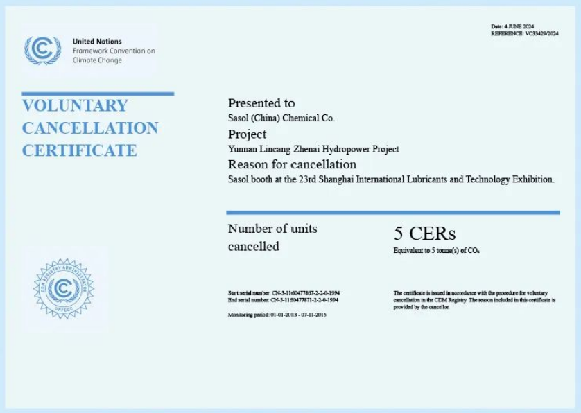 沙索不仅致力于提升电动汽车的性能,还积极响应全球碳中和的号召,推动可持续发展。其产品在满足高性能需求的同时,也注重减少碳足迹,为实现碳中和目标贡献力量。本次润滑油展活动,全程使用低碳环保材料,产生的温室气体排放已通过购买CDM项目:云南临沧遮奈水电项目进行抵消。
