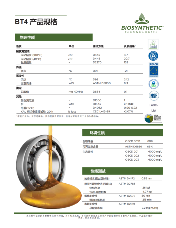 所有产品均已获得ECO LABEL生态标签认证、BLUE ANGEL蓝天使认证、REACH认证、NSF认证、USDA BIOBASED 美国农业部生物基认证产品、LuSC list清单、EPA美国国环保署认证等认证。