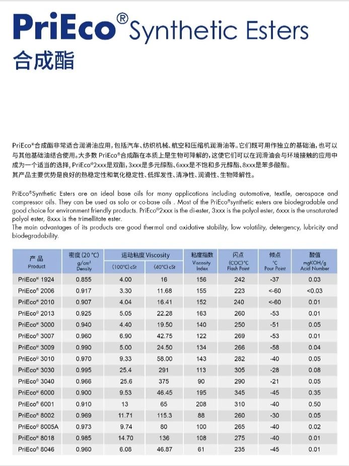 PriEco®Synthetic Esters 合成酯