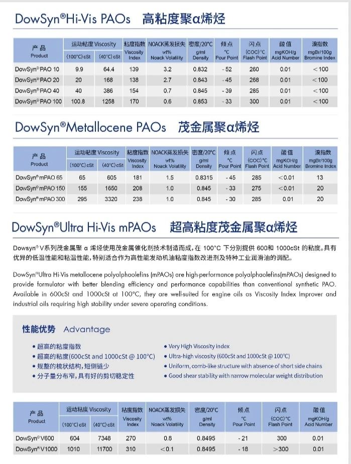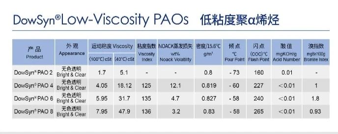 DowSyn®Polyalphaolefins 聚α烯烃PAOs