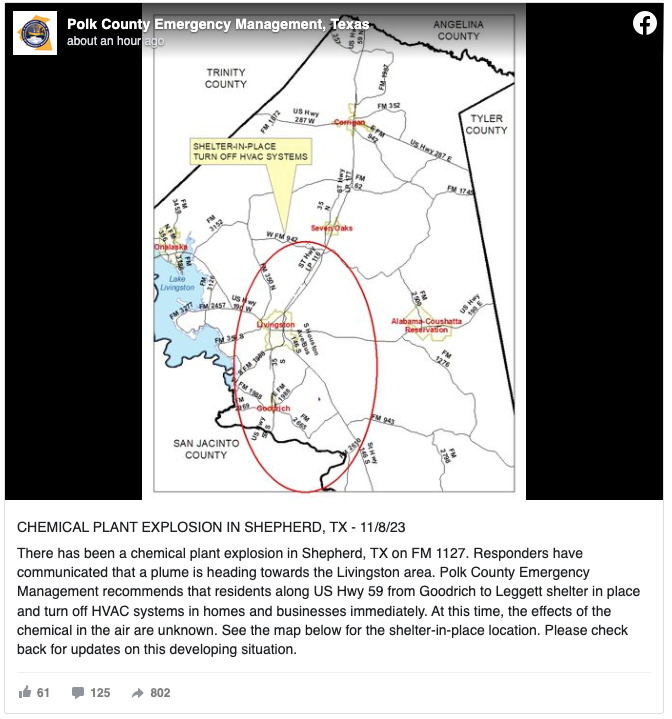发生爆炸的万全资源解决方案公司位于谢泼德。受影响的社区在休斯顿东北约100公里处,有2000名居民。