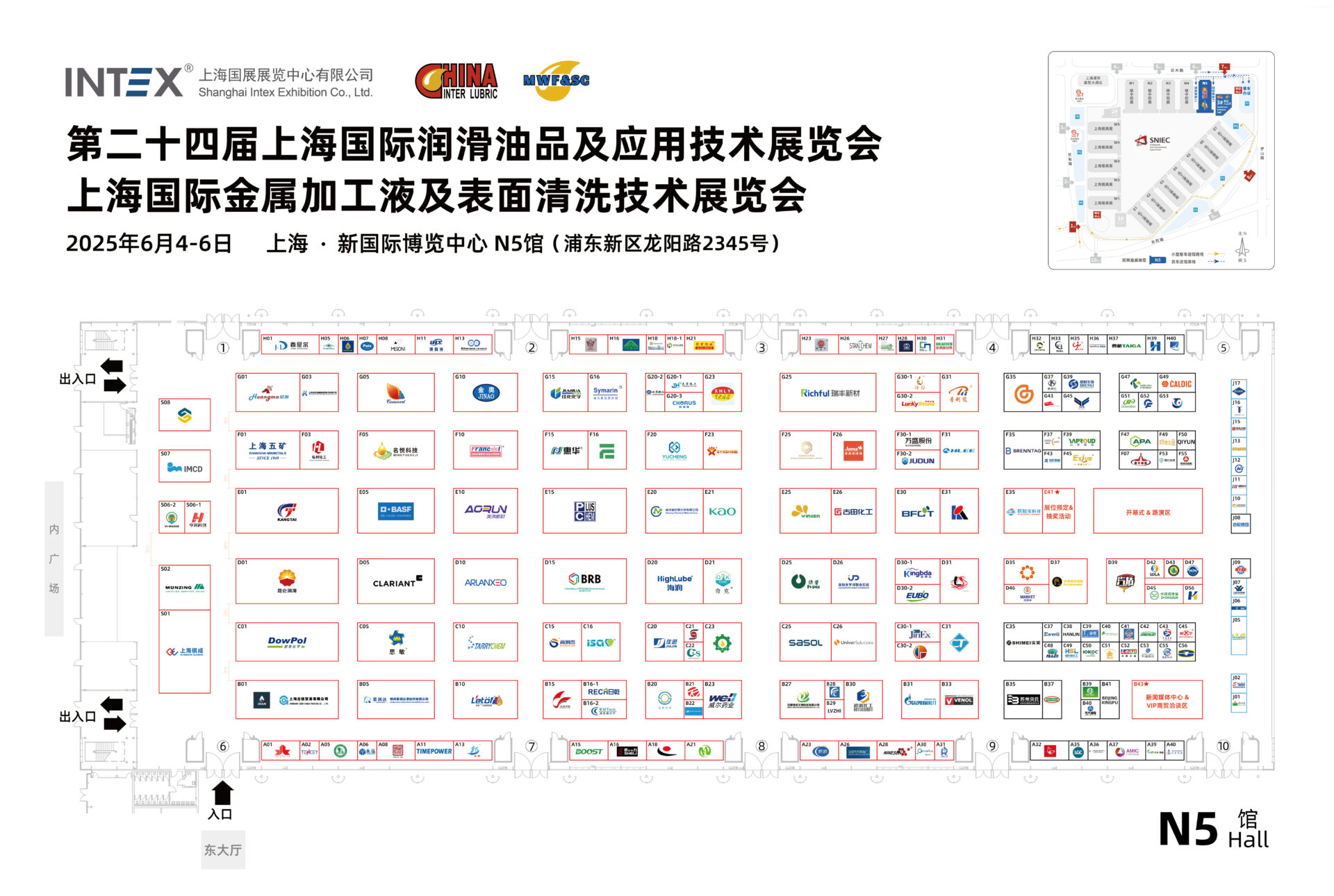 2025上海国际润滑油品及应用技术展览会、上海国际金属加工液及表面清洗技术展览会将于2025年6月4日-6月6日于上海举办,地点为上海新国际博览中心N5馆(浦东新区龙阳路2345号)