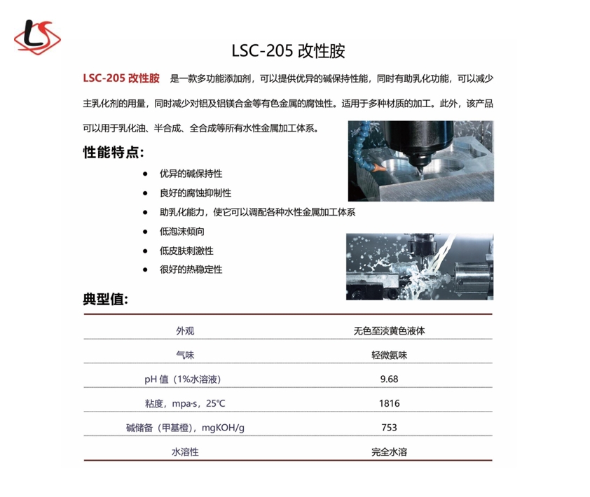 LSC-205改性胺 是一款多功能添加剂,可以提供优异的碱保持性能,同时有助乳化功能,可以减少主乳化剂的用量,同时减少对铝及铝镁合金等有色金属的腐蚀性。适用于多种材质的加工。 2024-05-30文章导航历史的文章历史的文章:BYK-9740未来的文章未来的文章:BT75 LP相关消息奥伦博锐2024-05-30乙丙胶7900E2024-05-30润湿剂E-332024-05-30三羟甲基丙烷壬酸酯2024-05-30碳21 二元羧酸 BG-15502024-05-30奥伦博锐2024-05-30