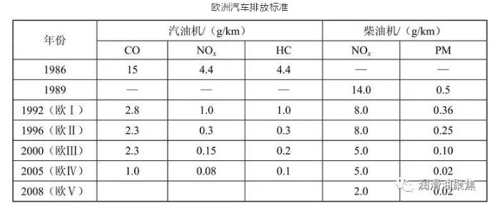 欧盟自1988年以88/77/E1~C指令控制总重3.5t以上柴油车排气污染物,分阶段实施欧Ⅰ和欧Ⅱ标准,2000年开始分阶段实施欧Ⅲ和欧Ⅳ标准,2009年实施最新的欧Ⅴ标准。欧Ⅴ指标的目标是使柴油车PM排放量比欧Ⅳ指令减少80%,NOx减少20%;汽油车NOx和HC排放量各减少25%。